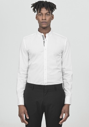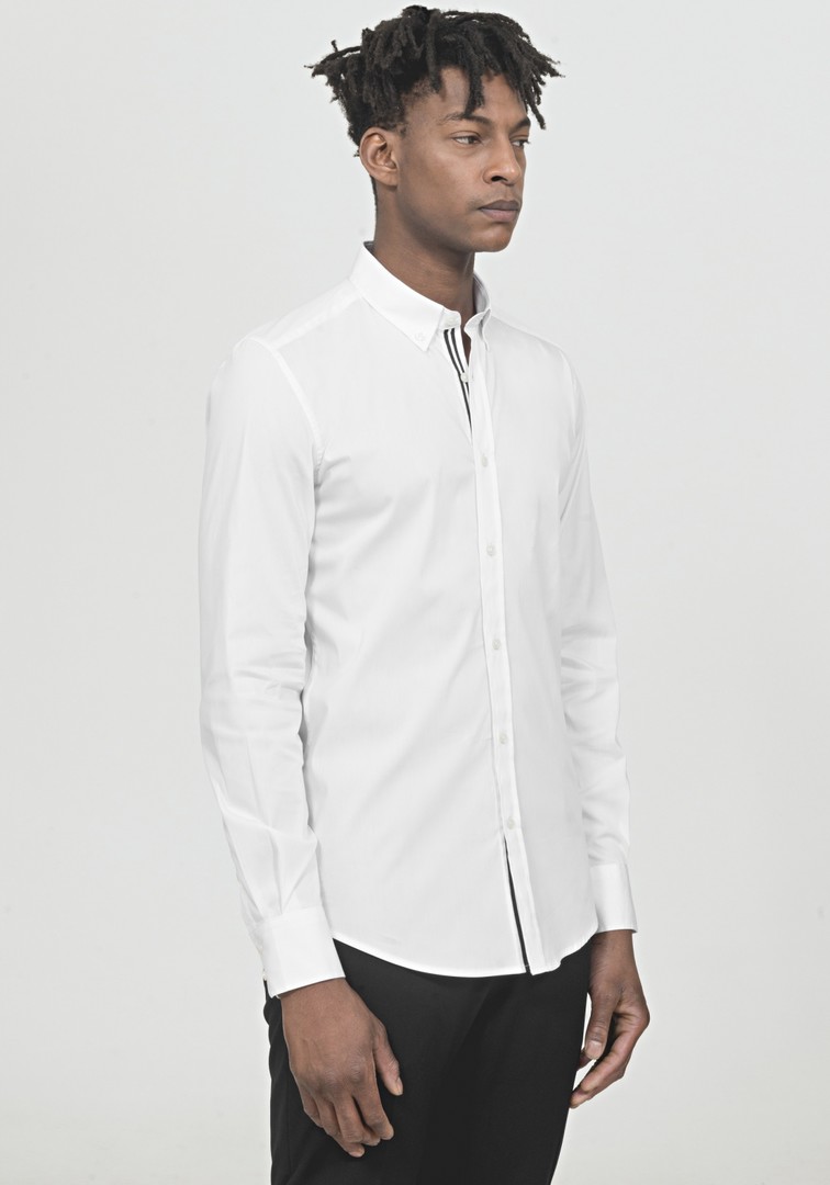 Camisa lisa com botão no colarinho, slim fit